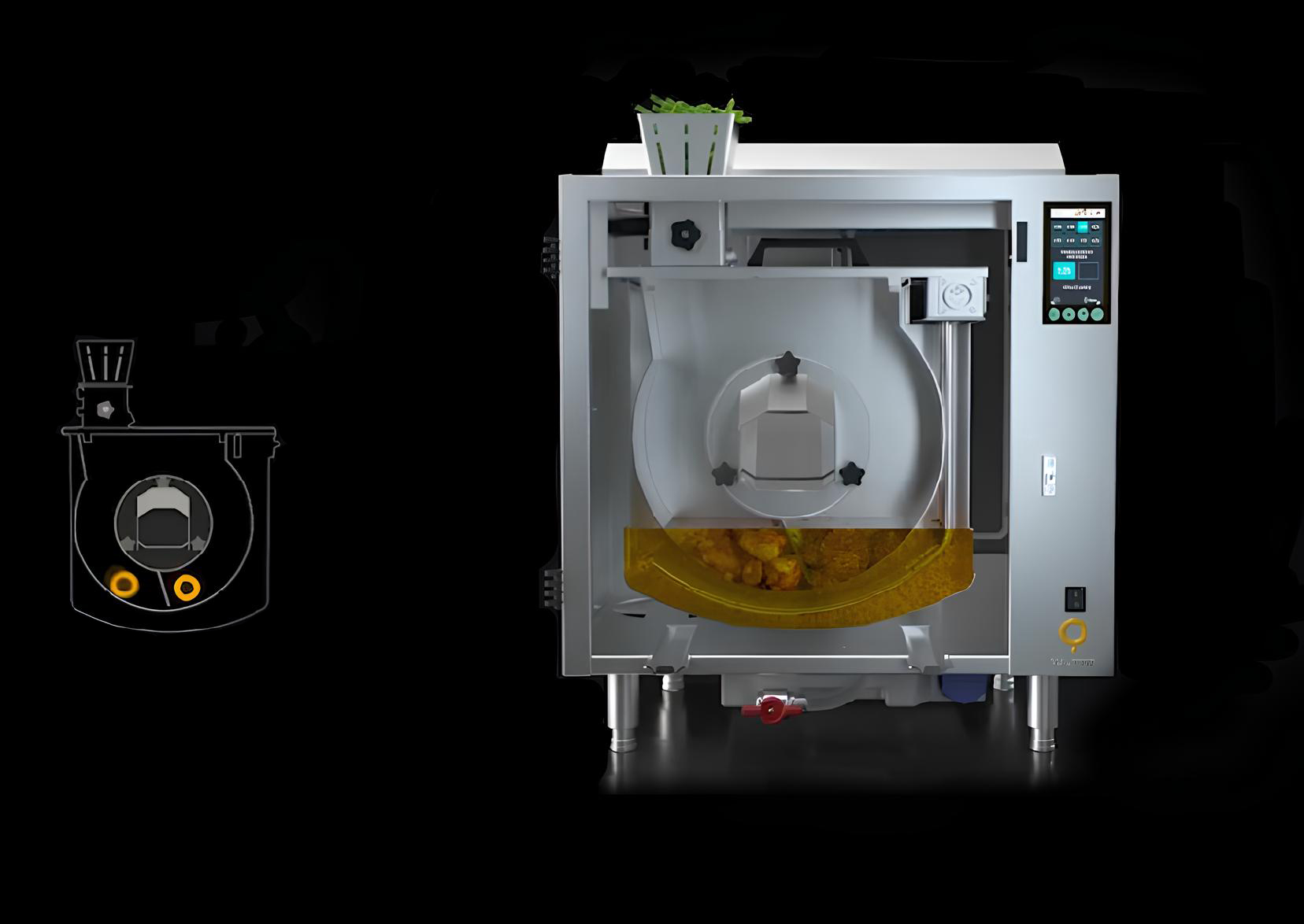 Во фритюрницах QualityFry используется герметичный корпус для вертикальной жарки. Продукт попадает в верхнюю часть и выходит снизу, не нужно открывать фритюрницу, что бы достать продукт, не будет дыма и запаха. Эта система также защищает масло от света и минимизирует контакт с кислородом, продлевая срок его службы. Автоматически контролирует процесс и непрерывно перемешивает масло.